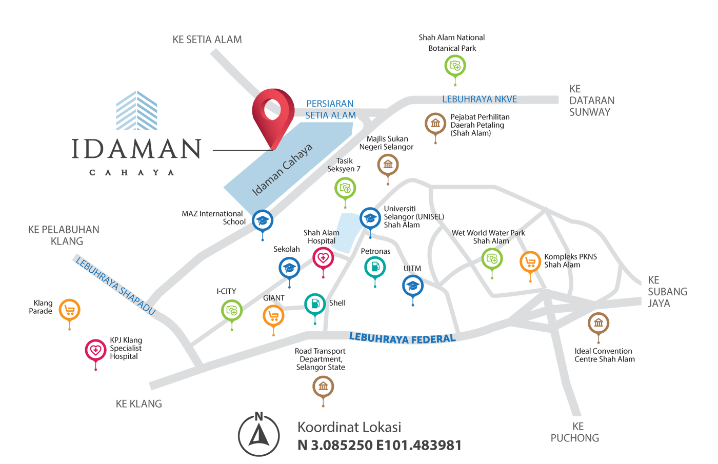 Selain daripada itu, Idaman Cahaya boleh akses ke Lembah Klang dan Shah Alam dengan mudah melalui Lebuhraya Persekutuan dan Lebuhraya Shapadu. Idaman Cahaya semestinya menjadi pilihan utama bagi keluarga yang mengimpikan kehidupan selesa dengan gaya hidup yang serba lengkap.RUMAH DILENGKAPI DENGAN